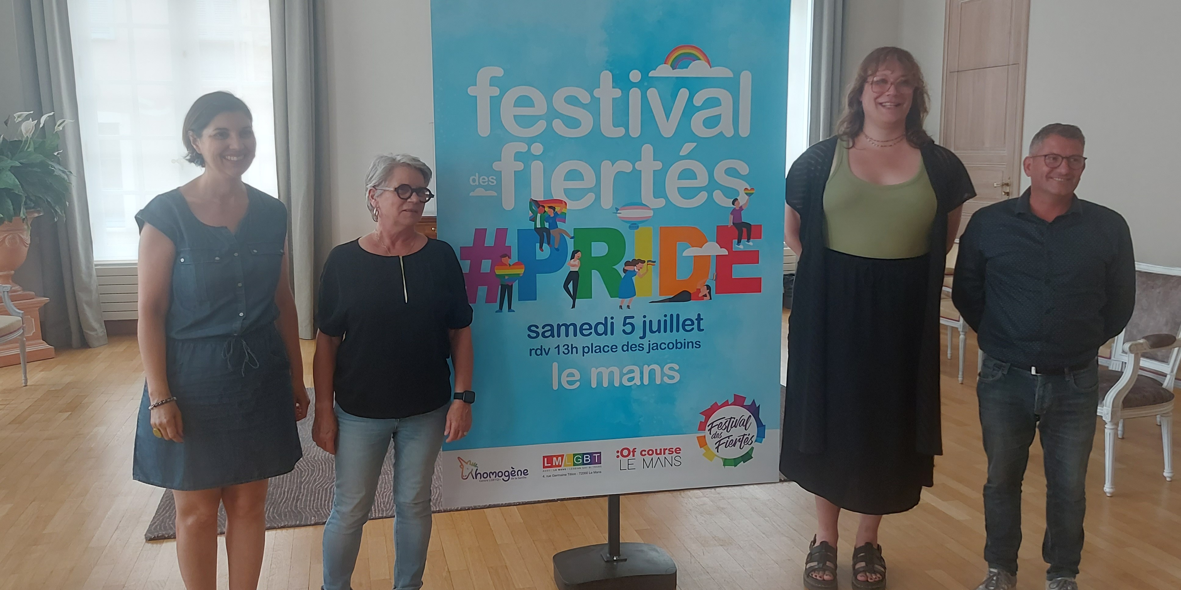 Mercredi 25 juin, la ville du Mans présentait le Festival des fiertés du 5 juillet dans une conférence de presse avec les associations partenaires, LMLGBT et Homogène, mais également avec la directrice adjointe de la scène nationale Les Quinconces et l’Espal qui présentait le spectacle le Pédé programmé pour le prochain temps fort à ciel ouvert. Les Quinconces organisent aussi une expo queer avec les associations. L’expo se tiendra dans le hall des Quinconces, juste à côté de la place des Jacobins où sera installé le Village associatif du Festival.